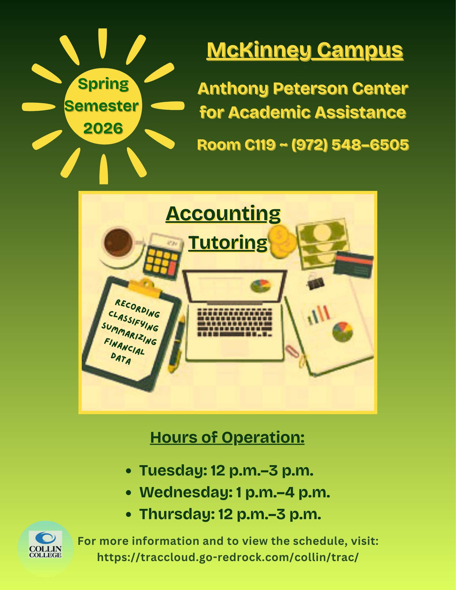 Room C119 | mckapcaa@collin.edu | 972.548.6505 | Schedule an Appointment